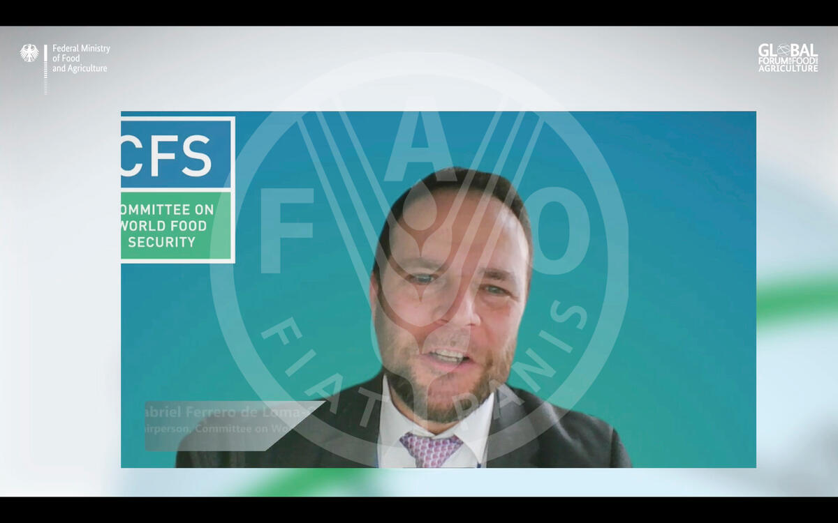 28 January 2022, Berlin/Rome, Germany/Italy - Virtual Closing Press Conference of the Global Forum for Food and Agriculture 2022 Gabriel Ferrero, Chair of UN Committee on World Food Security (CFS).