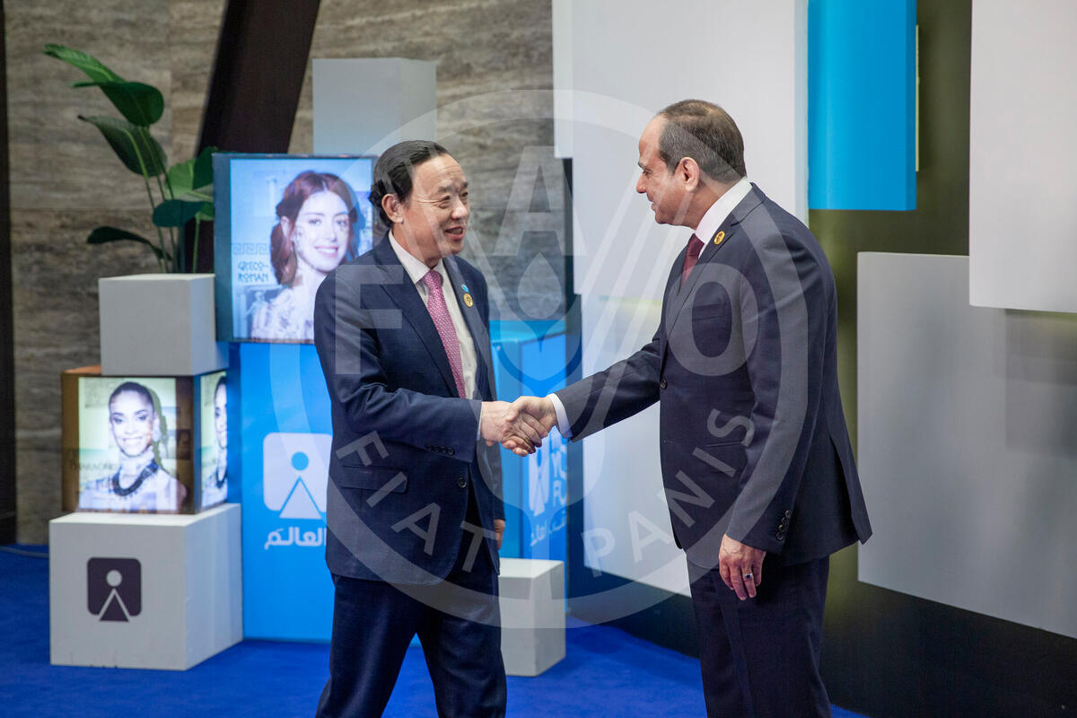 14 December 2019, Sharm El Sheik, Egypt -FAO Director-General Qu Dongyu (L) meets Abdel Fattah El Sisi, President of Egypt (R), in the sidelines of the World Youth Forum in Sharm El Sheikh, Egypt.