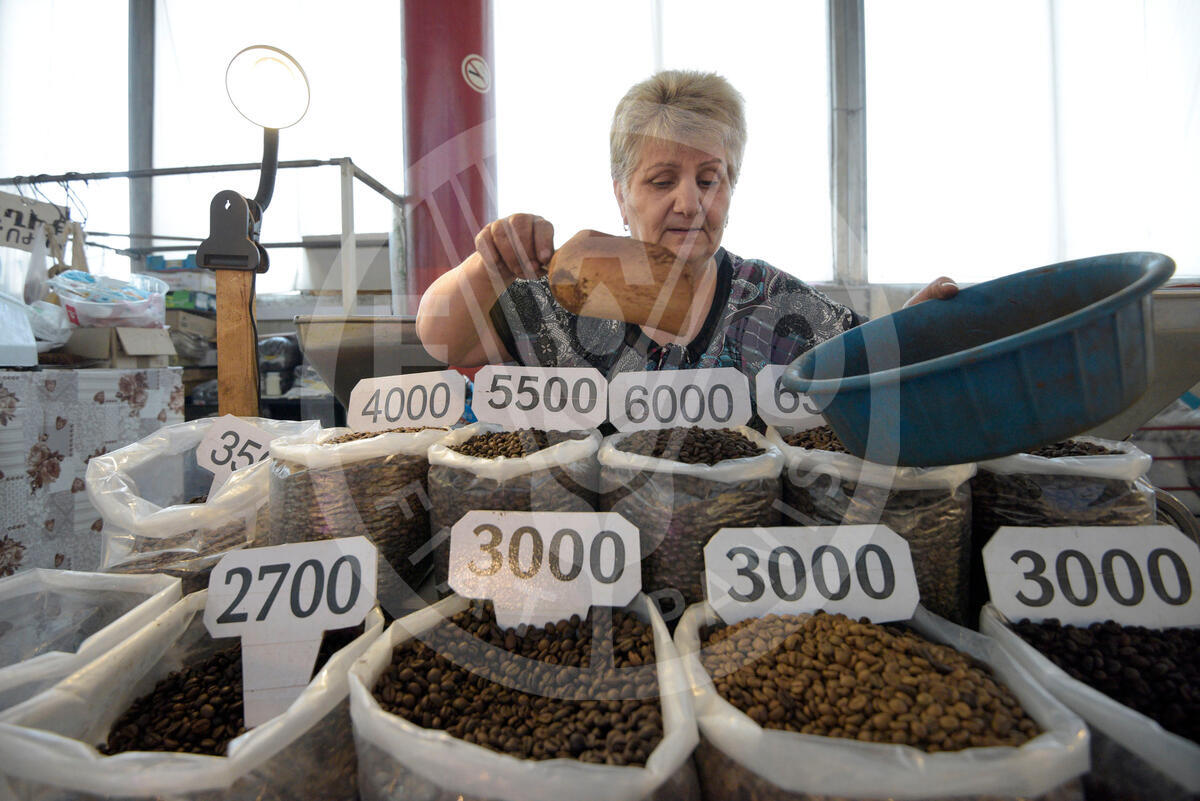 13 May 2019, Yerevan Armenia - Vegetables are sold at GUM market. Despite a considerable economic growth and improvements in household welfare in the recent years, Armenia remains highly vulnerable to global economic shocks, volatility in international food and commodity prices and weather shocks that negatively affect countries' economy and the food security situation in general. At present, the agricultural sector remains essential for the economy of the country. Agriculture is the main source of economic activity in rural areas and significant contributor to GDP. It produces 14.9 % of GDP (as of 2017) and employs about 36.6 % (2017) of the working population of whom nearly 56% are female farmers. The agricultural sector of Armenia has undergone through the transformation and reforms during the last two decades resulting in a series of policy, institutional, and structural changes. As a result, the ability of the country to maintain food security at the national level does not always translate into better nutrition outcomes at the household level. The Global Hunger Index (GHI) demonstrates that hunger situation in Armenia is about 5 percent.