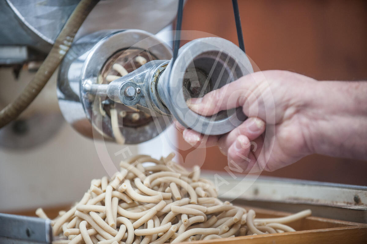 23 December 2021, Lipari, Italy - Production of macaroni, organic pasta produced with the use of ancient wheat seeds, of the Senatore Cappelli variety, in the Piano Conte district, in Lipari, in the Aeolian Islands Archipelago, north of Sicily. Recently in the Aeolian Islands there is a return to agriculture, with particular attention to products and methods of ancient tradition, such as the cultivation of ancient wheat seeds, a variety of grains that were used in the past in southern Italy and that never underwent no modification by man. Some examples of ancient wheat varieties are Senatore Cappelli, Maiorca, Russello.