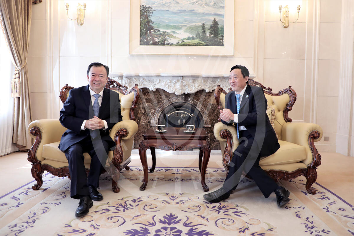 09 March 2023, Beijing, China - FAO Director-General QU Dongyu meeting with Vice Chairman Zhao Fengtao of CIDCA (China International Development Cooperation Agency). DG Qu appreciated CIDCA's contribution to international aid, and hoped to strengthen FAO&CIDCA cooperation in SSC, contributing to global food security.