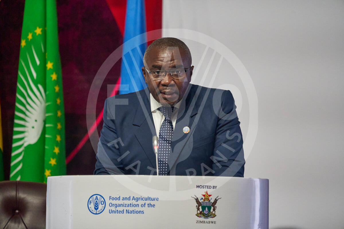 Zimbabwe, 2023. FAO Director-General QU Dongyu address delegates attending at a Regional Water Conference