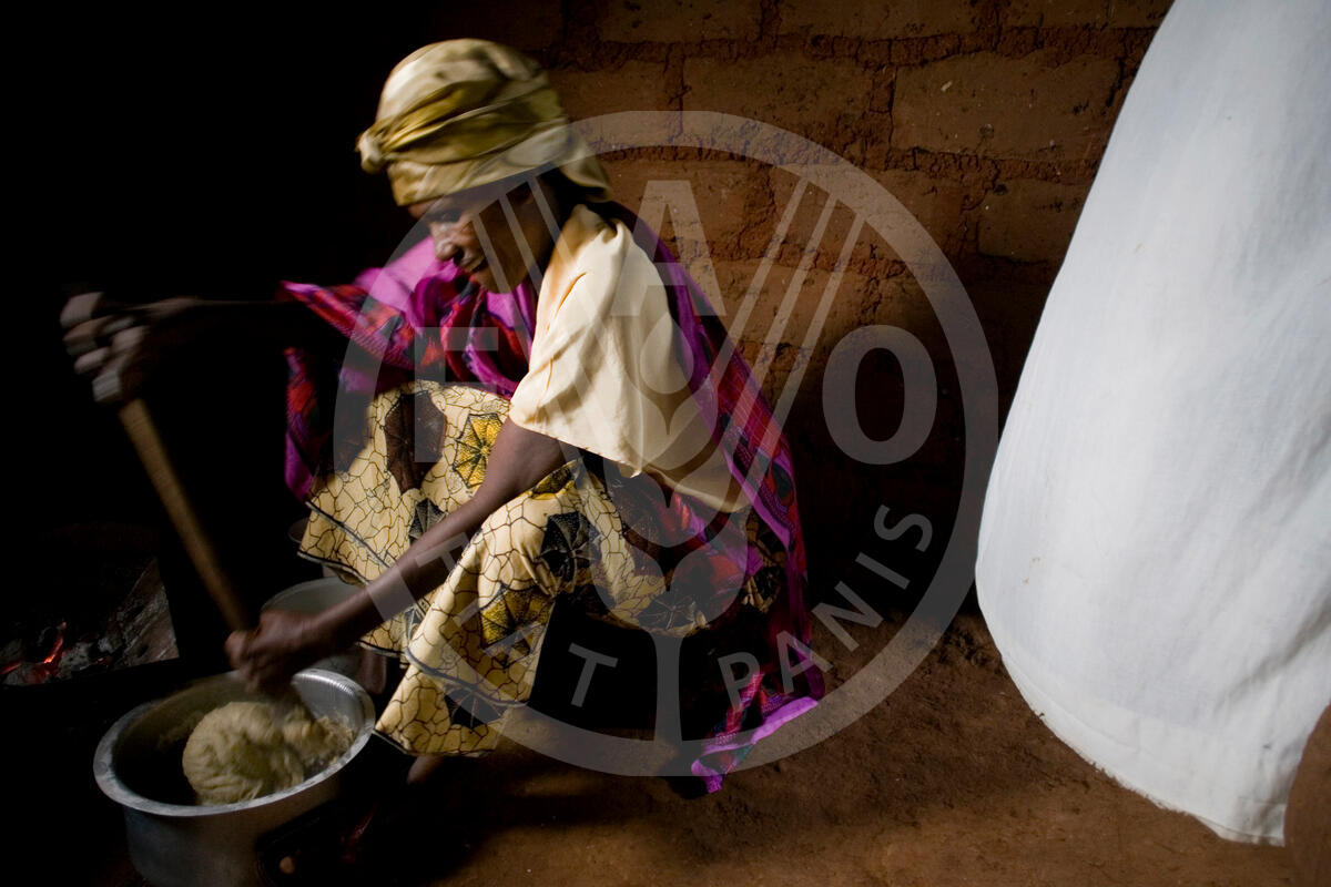 Villager cooking cassava in preparation of a meal. Cibitoke, 70km north of Bujumbura.