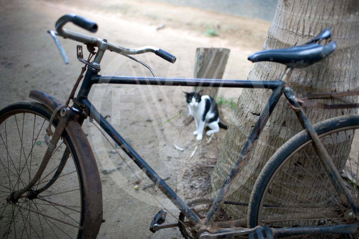 SRI LANKA 2005. A Telefood Oil Extraction and Medicinal Herb Project beneficiary's bicycle which he uses to get to his rice fields and cows, which he milks, each morning.