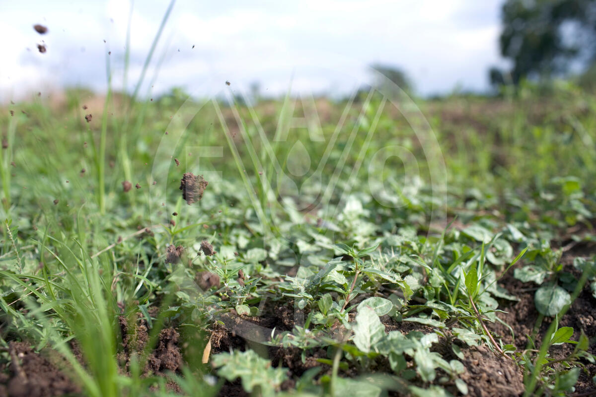 A Telefood Oil Extraction and Medicinal Herb Project beneficiary harvesting an herb called dummella. The herbs are dehydrated and sold for Ayurvedic medicine as well as natural beauty products in Sri