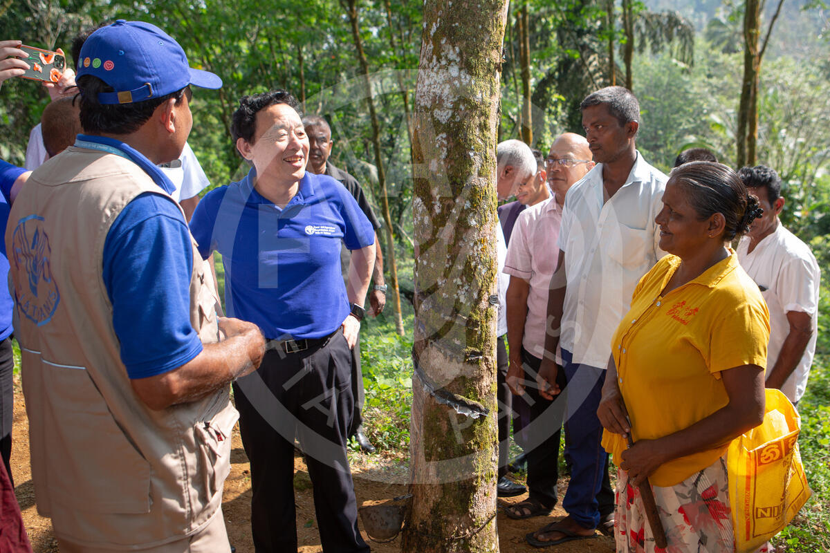 18 February 2024, Colombo, Sri Lanka - FAO Director-General QU Dongyu meeting with rubber tappers and farmers during his visit at Dartanfield Rubber Estate, Agalawatta.