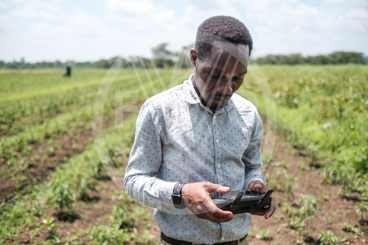 05 December 2023, Tengeru, Tanzania- A drone operator prepares to work at a farm at Tengeru, near the city of Arusha.