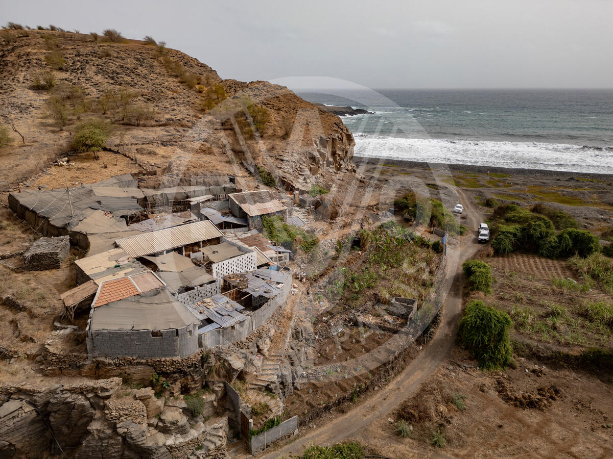 30/04/2024 - Cabo Verde. Aerial view of coastal village by the sea. FAO China South-South Cooperation (SSC) Programme supporting Agrifood systems in Cabo Verde.