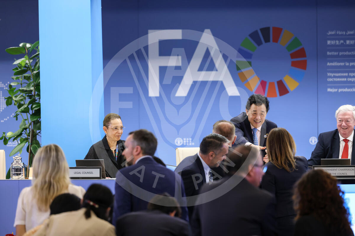 10 June 2024, Rome, Italy - FAO Director-General QU Dongyu delivers his speech during the opening of the FAO Council 175th Session. The Council runs from 10 to 14 June 2024 (Plenary Hall) FAO Headquarters.