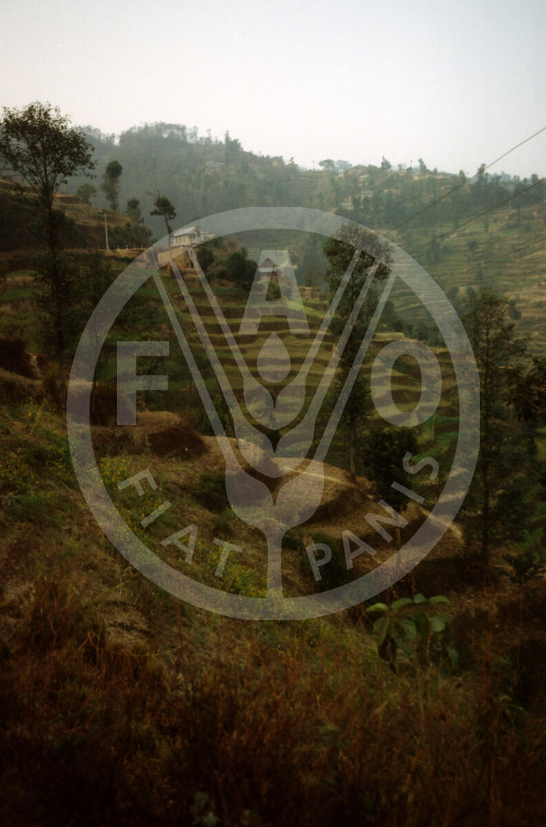 NEPAL (date unknown). Terraces planted with rice in the mountains